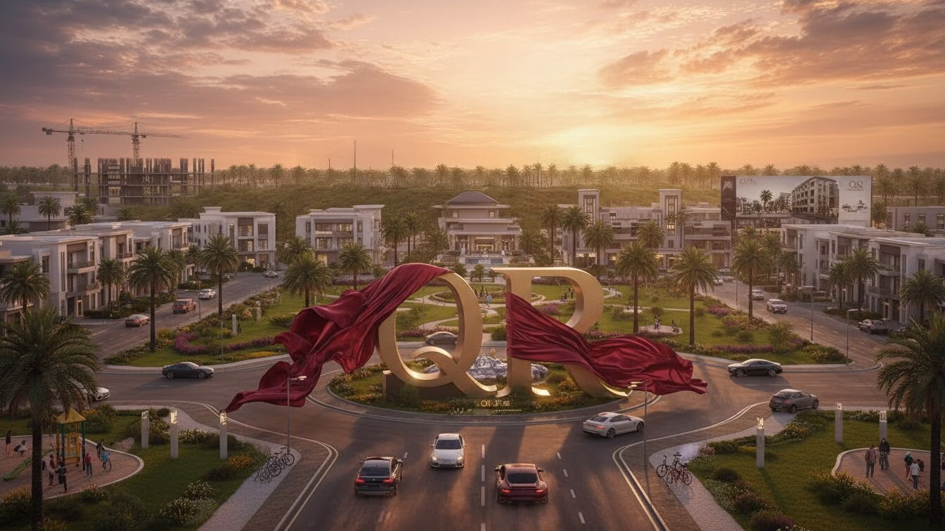 A wide, landscaped boulevard with a signature entrance that defines luxury living.