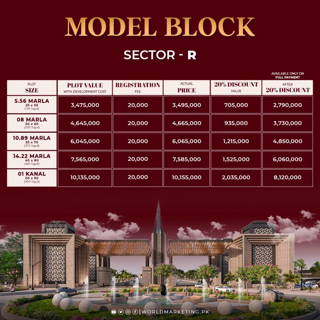 | 8 Marla | PKR 55–75 Lakh* | 10–15% | Spread over 3–4 yrs | On development |
